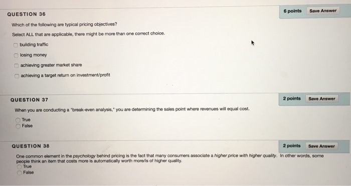 Solved 6 Points Save Answer Question 36 Which Of The Chegg Com